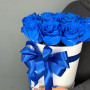 На фото монобукет из 15 синих роз в коробке «ночь и море». В составе: роза (синяя) 15 шт, шляпная коробка (s) 1 шт, атласная лента 2 шт, . Все цветы свежие и ароматные, букет красиво оформлен и отлично подходит для подарка. Доступна доставка цветов или самовывоз.