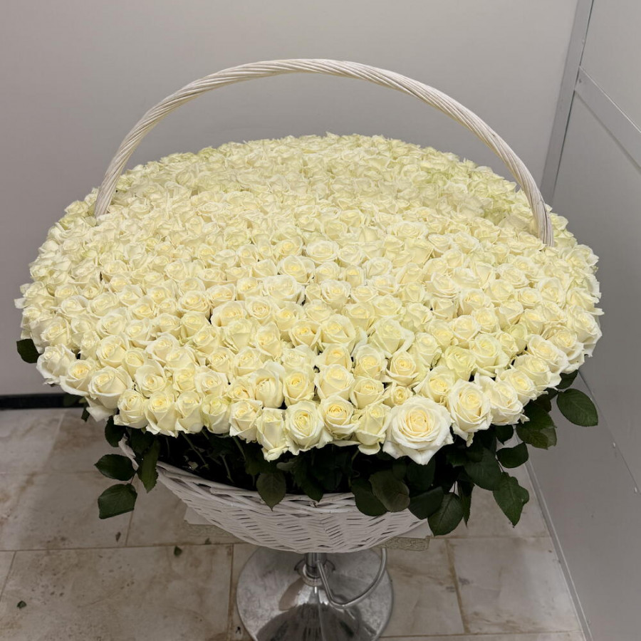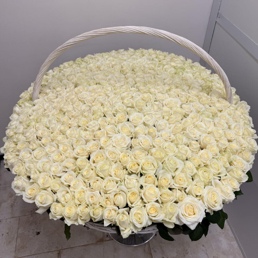 Букет из 501 белой розы в корзине «Нежность» в Благовещенске